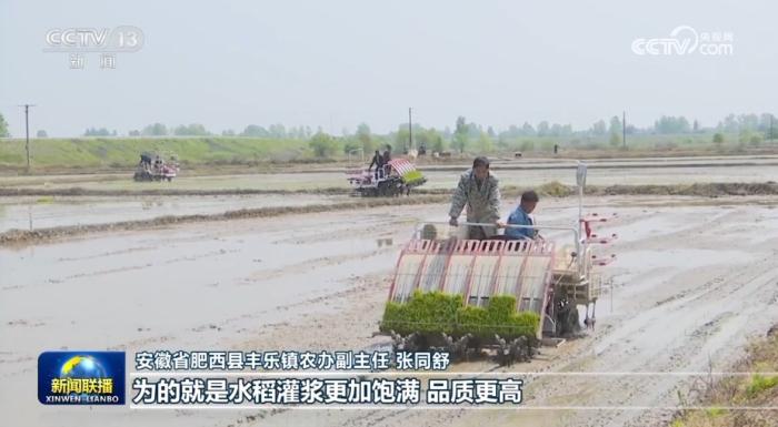 在安徽省肥西縣新華村的“小田變大田”示范區(qū),由于路網(wǎng)暢通、溝渠配套,良好的作業(yè)條件提高了農(nóng)機手們插秧的作業(yè)效率,加快了整體夏種進(jìn)度。(央視網(wǎng))