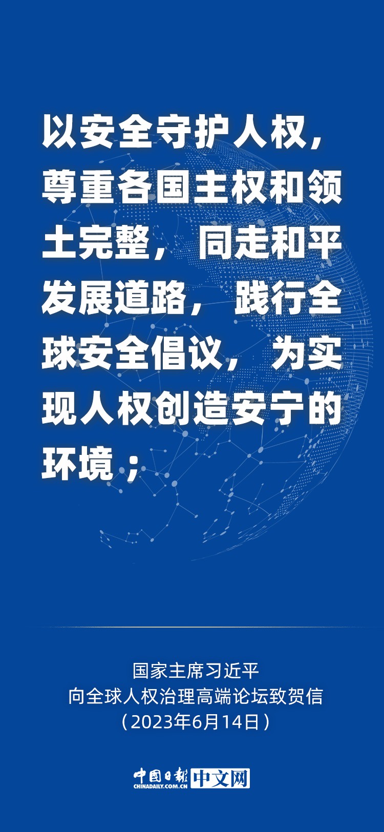6月14日,國(guó)家主席習(xí)近平向全球人權(quán)治理高端論壇致賀信。習(xí)近平指出,當(dāng)前,人類又一次站在歷史的十字路口,全球人權(quán)治理面臨嚴(yán)峻挑戰(zhàn)。我們主張: