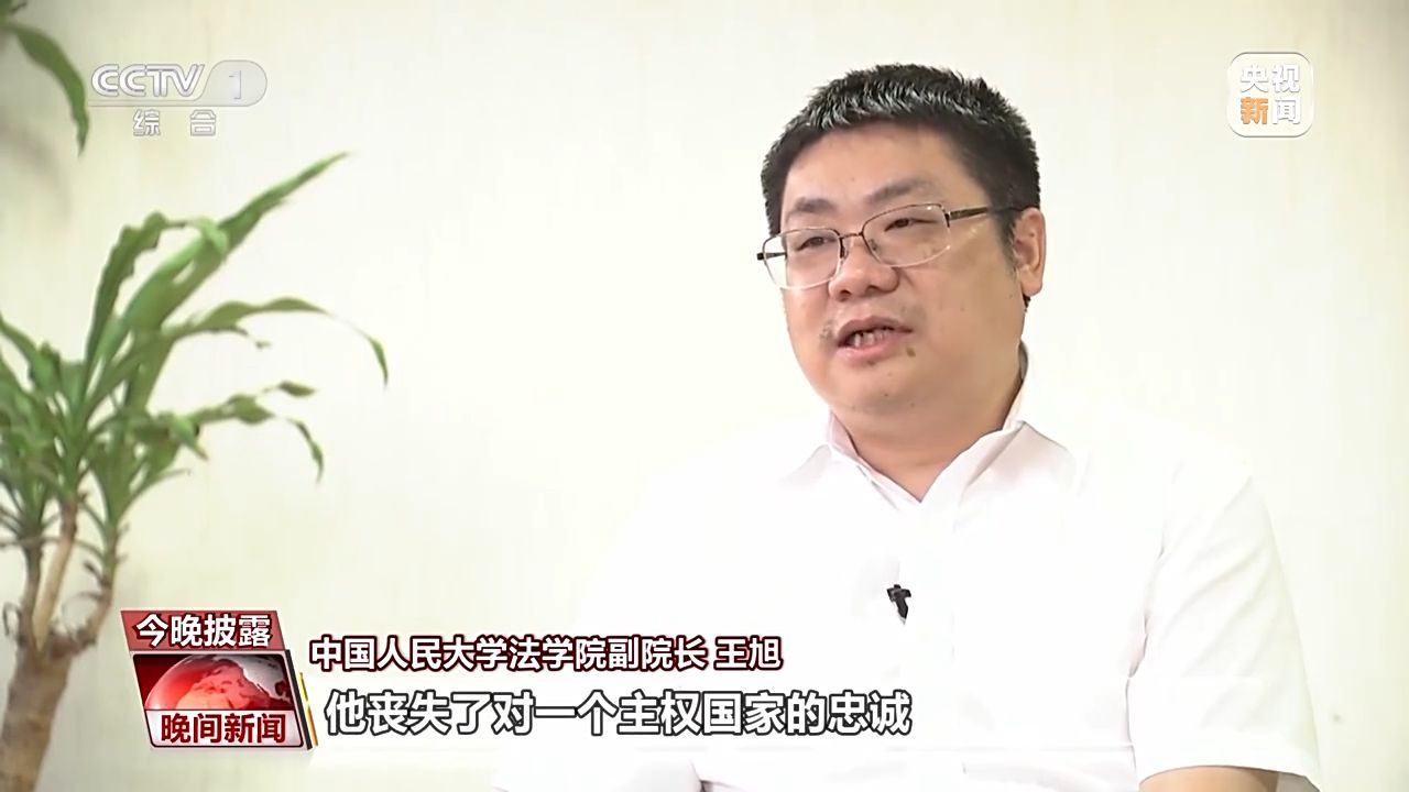 中國人民大學(xué)法學(xué)院副院長 王旭:投靠的社會(huì)危害性、主觀惡性,應(yīng)該是更強(qiáng)烈的。投靠實(shí)際上就是說,他喪失了對(duì)一個(gè)主權(quán)國家的忠誠。