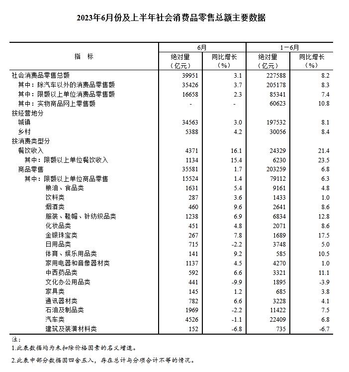國家統(tǒng)計(jì)局:2023年上半年社會消費(fèi)品零售總額增長8.2%