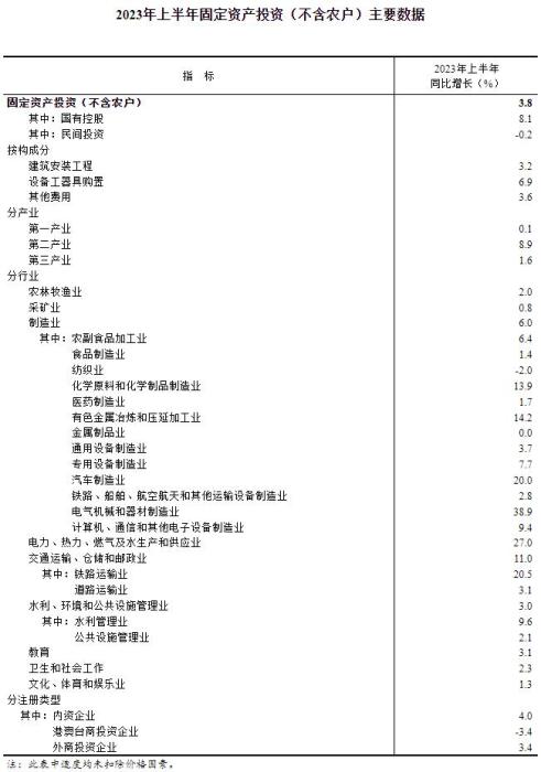 國家統(tǒng)計(jì)局:上半年全國固定資產(chǎn)投資增長3.8%