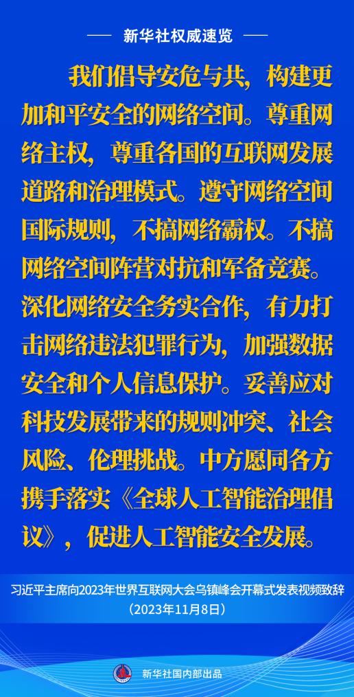 新華社權威速覽丨習近平主席向2023年世界互聯(lián)網大會烏鎮(zhèn)峰會開幕式視頻致辭金句