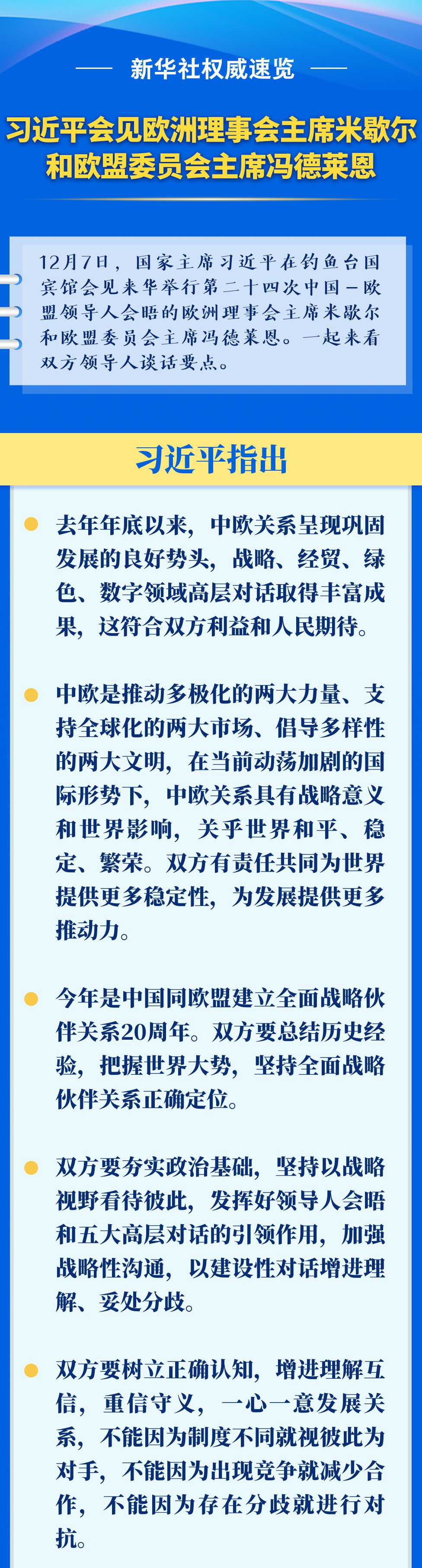 新華社權威速覽|習近平會見歐洲理事會主席米歇爾和歐盟委員會主席馮德萊恩