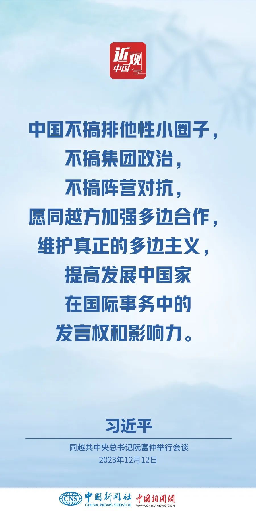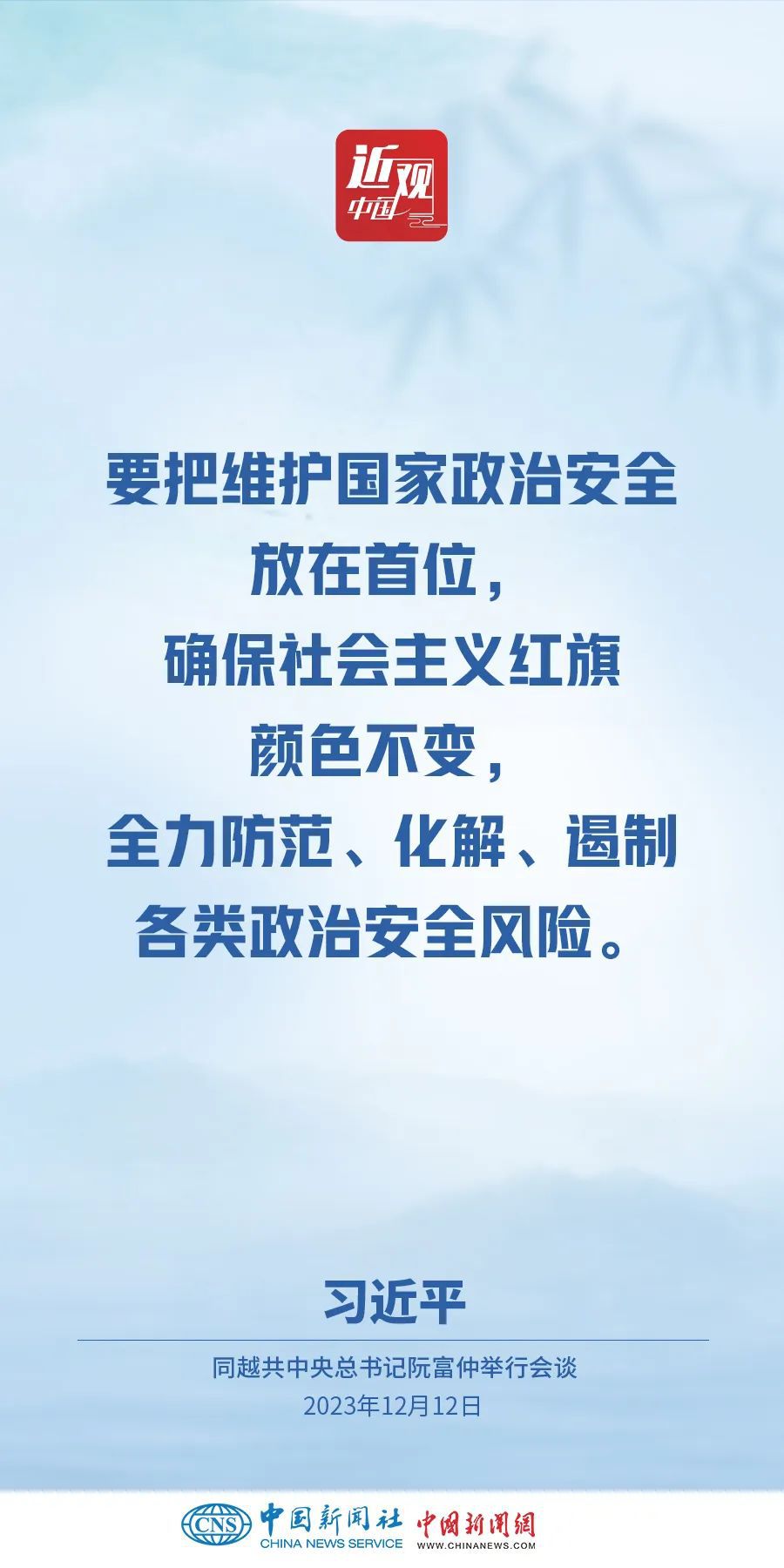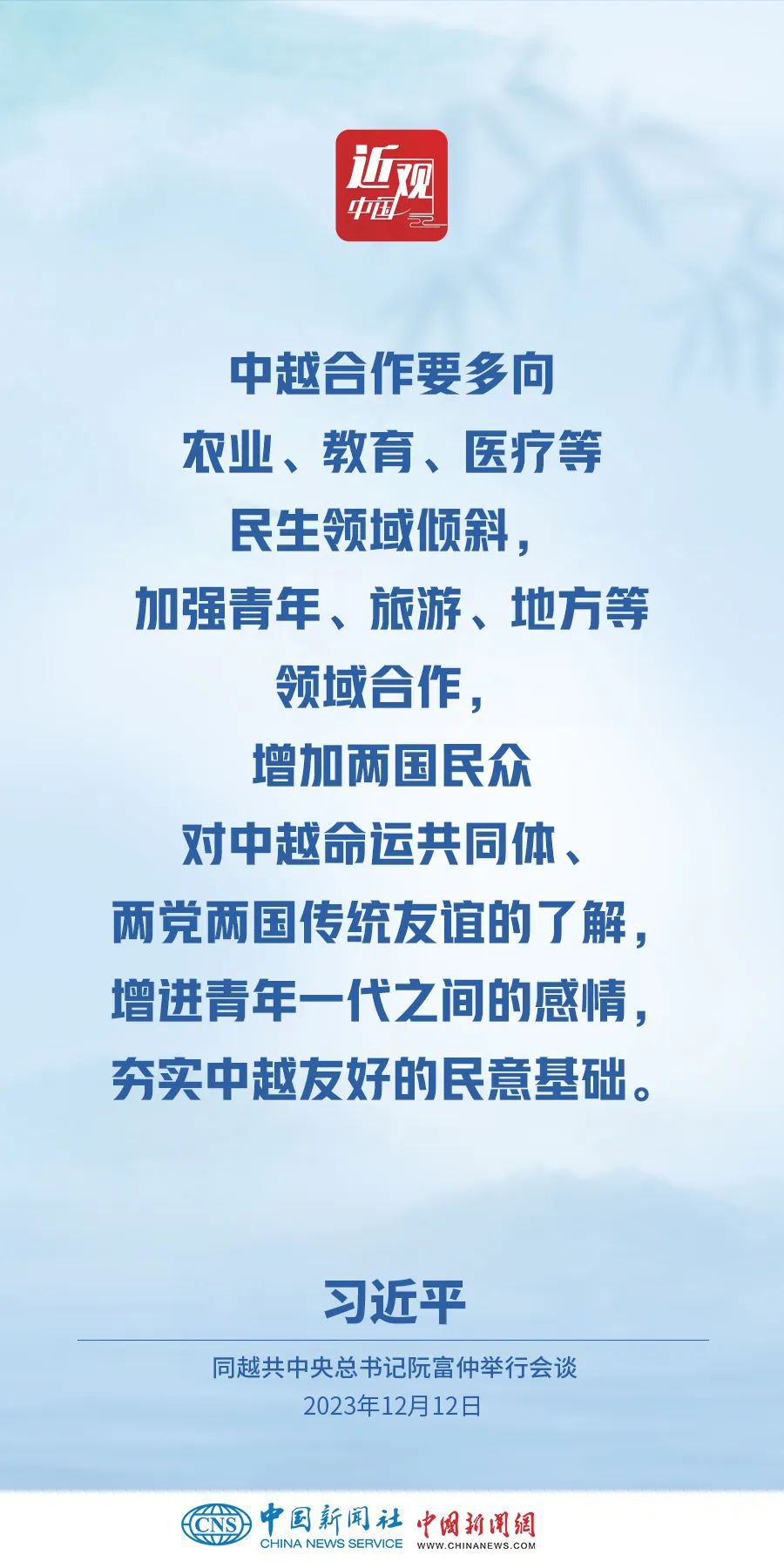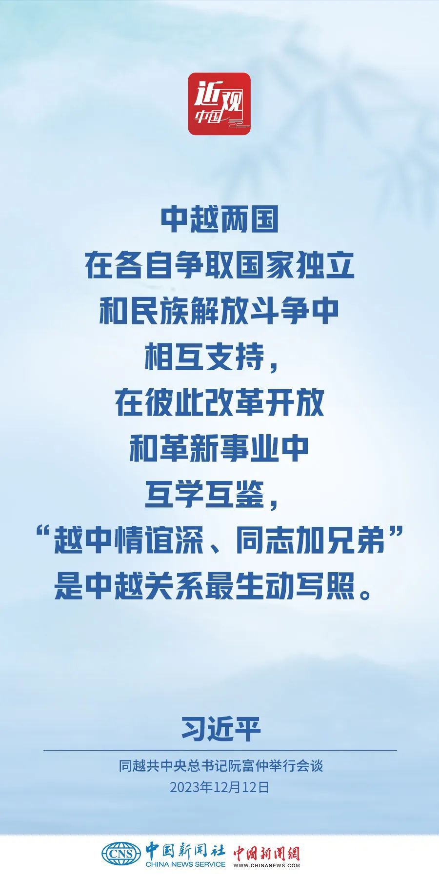 當?shù)貢r間12月12日下午,剛剛抵達河內(nèi)的中共中央總書記、國家主席習近平在越共中央駐地同越共中央總書記阮富仲舉行會談。雙方宣布中越兩黨兩國關系新定位,在深化中越全面戰(zhàn)略合作伙伴關系基礎上,攜手構建具有戰(zhàn)略意義的中越命運共同體。習近平指出——