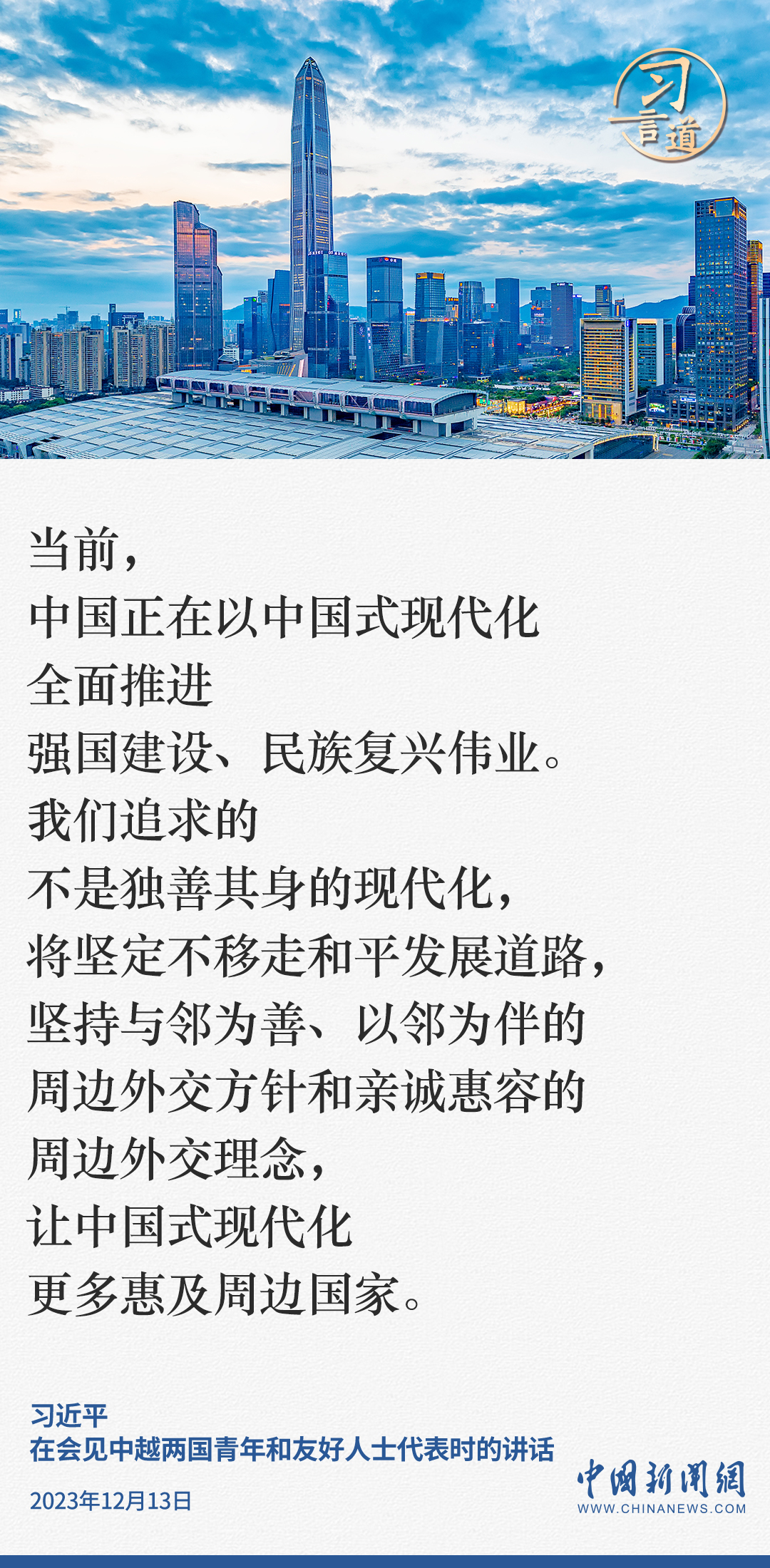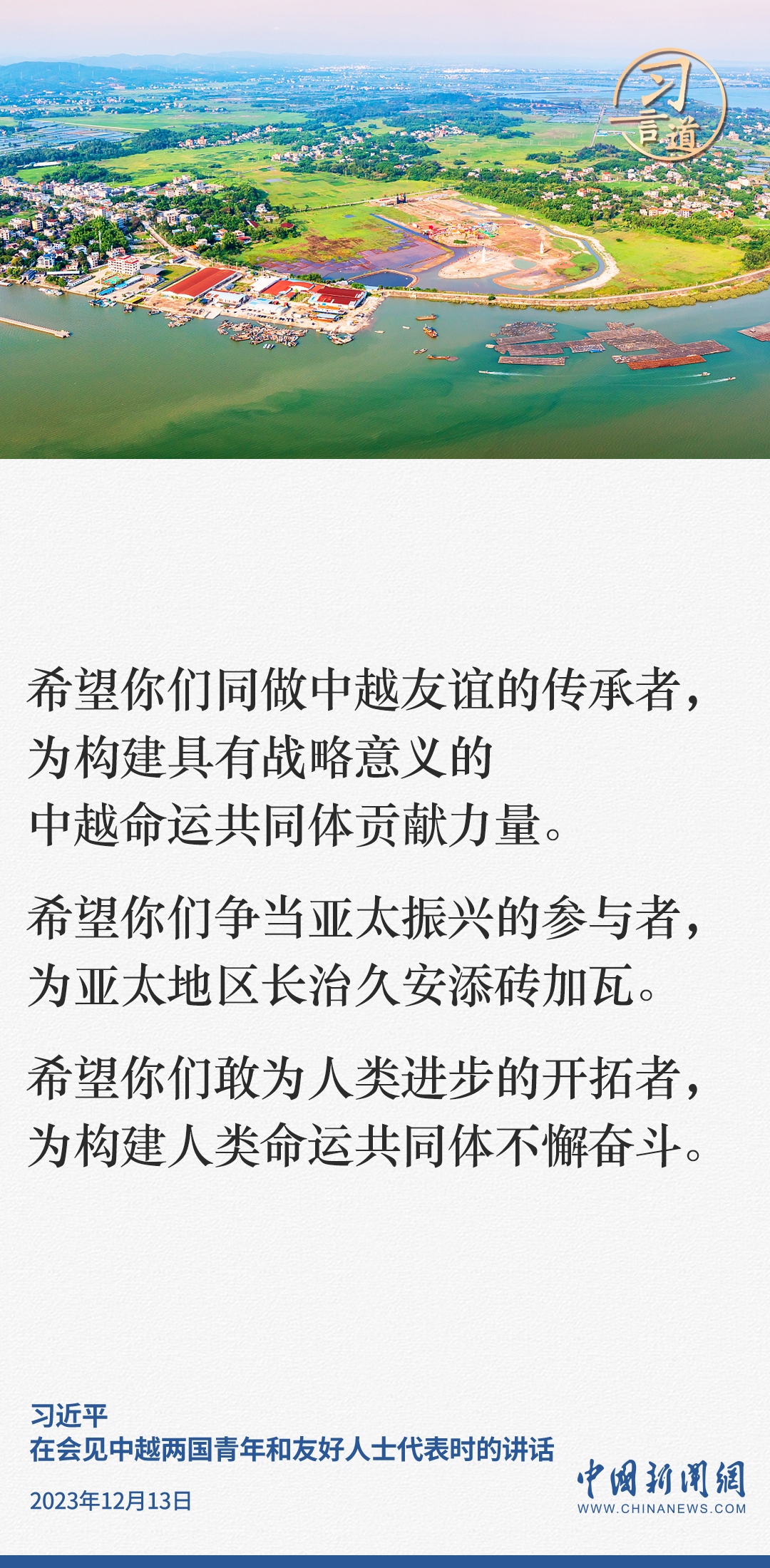 當(dāng)?shù)貢r(shí)間12月13日下午,中共中央總書記、國(guó)家主席習(xí)近平和夫人彭麗媛在河內(nèi)同越共中央總書記阮富仲夫婦共同會(huì)見中越兩國(guó)青年和友好人士代表。習(xí)近平指出——