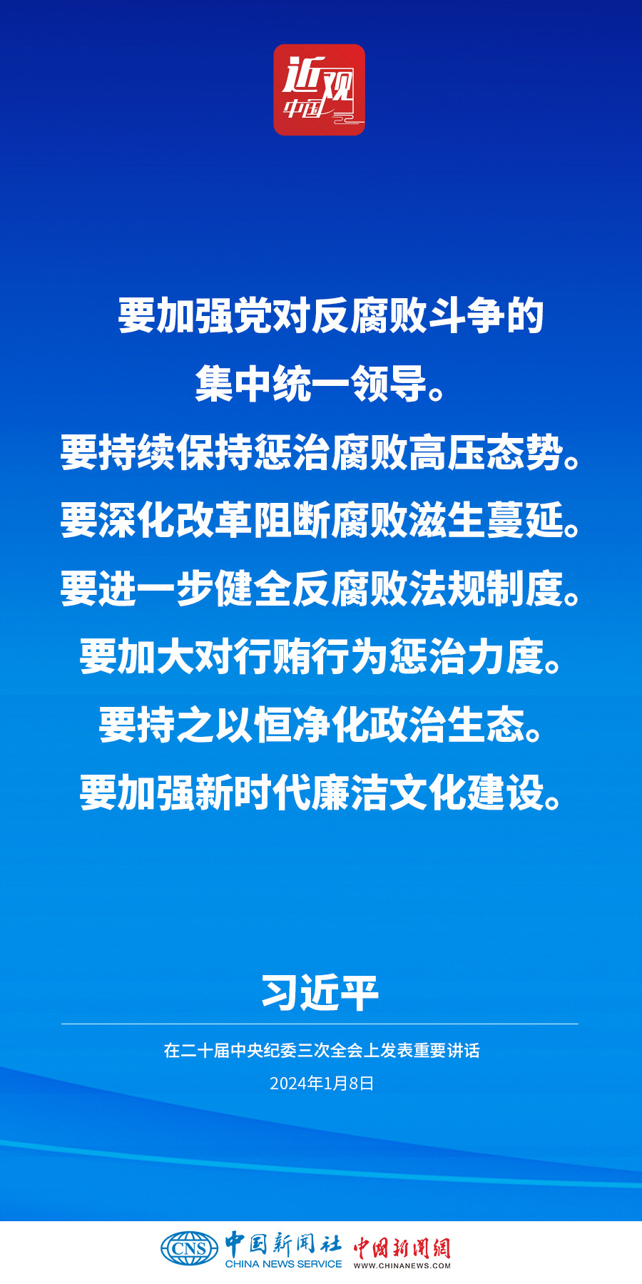 中共中央總書記、國家主席、中央軍委主席習(xí)近平8日上午在中國共產(chǎn)黨第二十屆中央紀(jì)律檢查委員會(huì)第三次全體會(huì)議上發(fā)表重要講話。他強(qiáng)調(diào)——