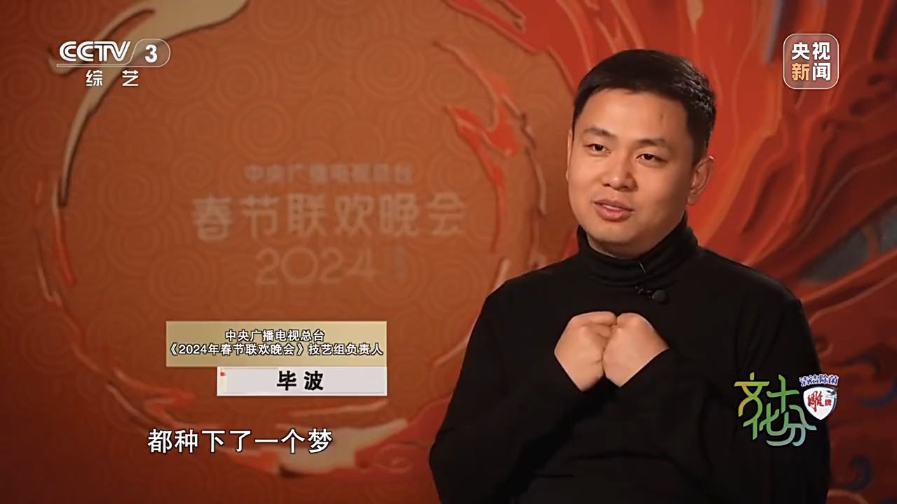 中央廣播電視總臺(tái)《2024年春節(jié)聯(lián)歡晚會(huì)》技藝組負(fù)責(zé)人 畢波:我們童年看到的很多文藝作品,其實(shí)在我們心中都種下了一個(gè)夢(mèng),過去了二三十年它開始生根發(fā)芽。研究蛟龍?zhí)柕倪@些科研人員,他們小時(shí)候也看《哪吒鬧?!?,我們甚至邀請(qǐng)了航天員去唱這首歌,他們小時(shí)候看的是《大鬧天宮》,現(xiàn)在他們?nèi)司驮谔鞂m,這是一個(gè)多么美妙的實(shí)現(xiàn)圓夢(mèng)的故事。
