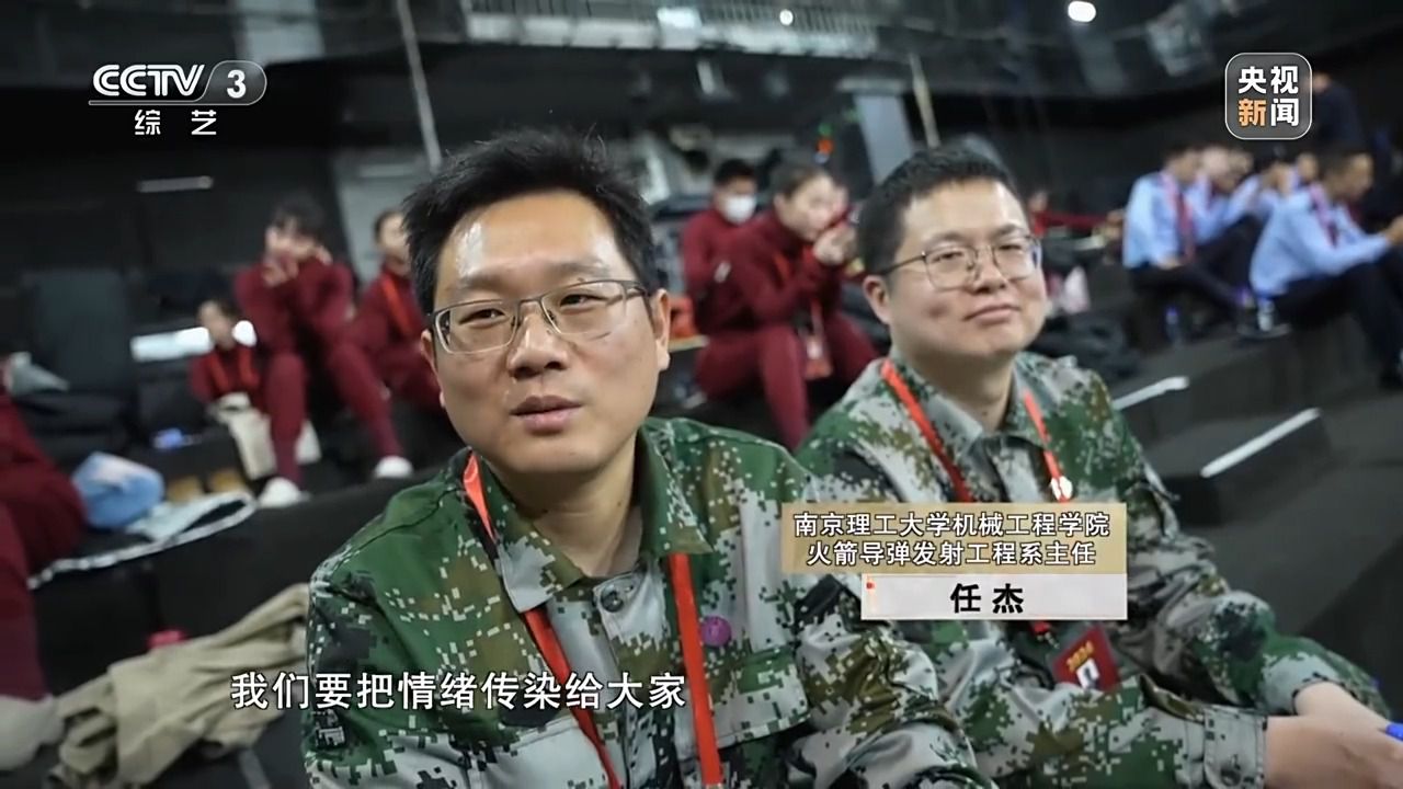 南京理工大學(xué)機(jī)械工程學(xué)院火箭導(dǎo)彈發(fā)射工程系主任 任杰:你看我們穿的這個(gè)服裝跟國(guó)防是相關(guān)的,而且又是演的貝塔這個(gè)角色,都應(yīng)該為它去增添光彩。我們?cè)谧呃壤锩娌辉诤醮蠹业哪抗?,雖然文藝表演不是我們的專長(zhǎng),但是我們拿出真誠(chéng)的態(tài)度,因?yàn)榛叵胄r(shí)候看動(dòng)畫片多幸福,小時(shí)候蹦蹦跳跳唱的時(shí)候,要把情緒傳染給大家。