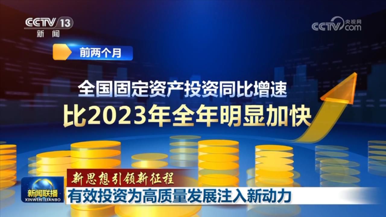 央視網(wǎng)消息(新聞聯(lián)播):習(xí)近平總書記強(qiáng)調(diào),要完善擴(kuò)大投資機(jī)制,拓展有效投資空間。今年開年以來(lái),服務(wù)高質(zhì)量發(fā)展成為擴(kuò)大有效投資的重要著力點(diǎn),投資規(guī)模持續(xù)增長(zhǎng),投資結(jié)構(gòu)質(zhì)量持續(xù)提升,助力中國(guó)經(jīng)濟(jì)實(shí)現(xiàn)平穩(wěn)開局。