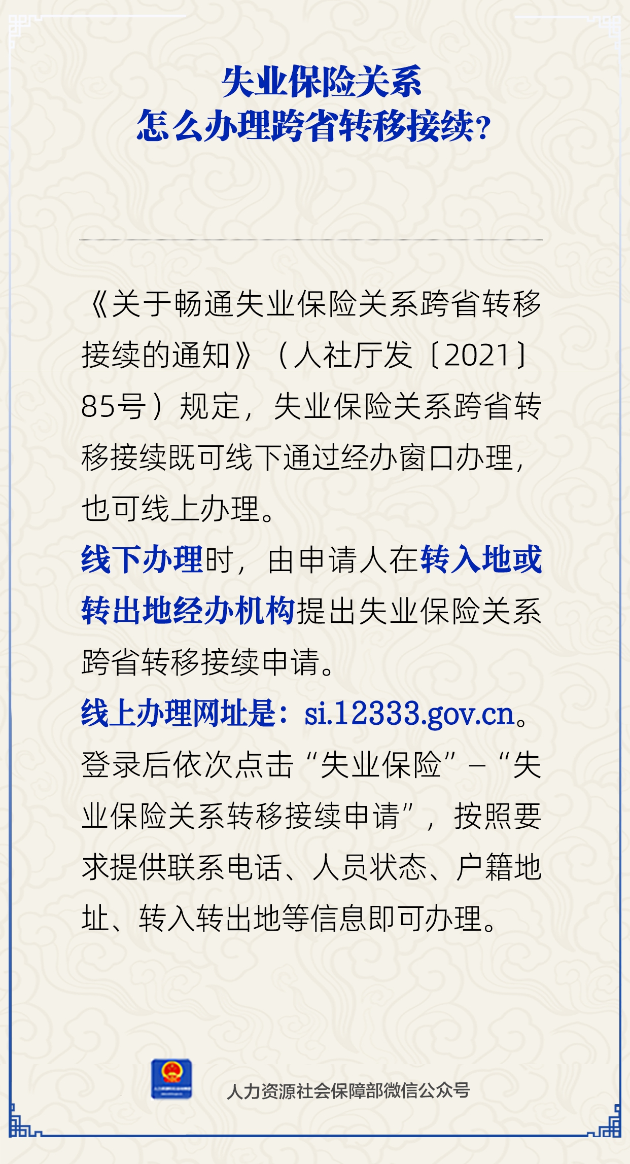 中新網(wǎng)5月6日電 據(jù)人力資源和社會(huì)保障部微信公眾號(hào)消息,失業(yè)保險(xiǎn)關(guān)系如何跨省轉(zhuǎn)移接續(xù)?就這一問(wèn)題,人力資源和社會(huì)保障部回應(yīng)稱(chēng),《關(guān)于暢通失業(yè)保險(xiǎn)關(guān)系跨省轉(zhuǎn)移接續(xù)的通知》(人社廳發(fā)[2021]85號(hào))規(guī)定,失業(yè)保險(xiǎn)關(guān)系跨省轉(zhuǎn)移接續(xù)既可線(xiàn)下通過(guò)經(jīng)辦窗口辦理,也可線(xiàn)上辦理。