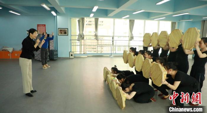 沒有音樂,只有“啪啪”的拍子聲和身體接觸地板的摩擦聲。排練的時候,孩子們的眼睛從不離開老師,伴隨著老師手勢的起落,做著每一個動作。