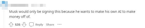 但也有人懷疑馬斯克的動(dòng)機(jī),“馬斯克之所以會(huì)簽署它,因是為他想用自己的人工智能來(lái)賺錢(qián)。”