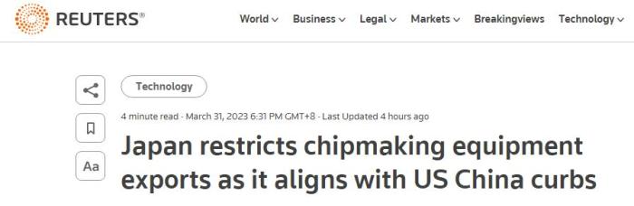 但路透社認為,日方的措施是為了配合美國實施的針對中國的芯片出口管制措施。英國《金融時報》還稱,日本此舉是在履行其與美國和荷蘭達成的、針對中國半導(dǎo)體的三方協(xié)議。