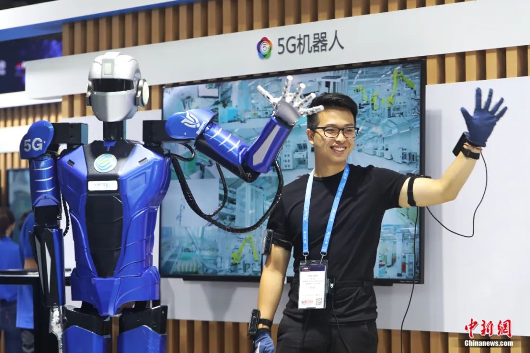 進(jìn)博會上,展商正在展示機(jī)器人化妝技術(shù)。湯彥俊攝