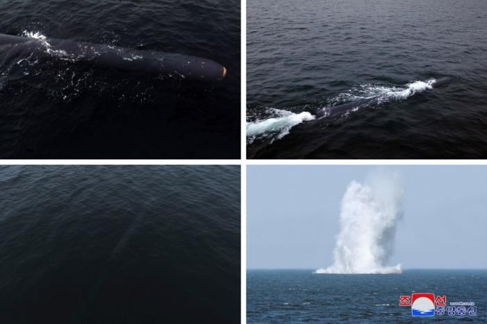 據(jù)報道,4月4日下午,朝鮮核無人潛水攻擊艇“海嘯—2”型在咸鏡南道金野郡加津港投入試驗,沿著在朝鮮東海設(shè)定的模擬1000公里距離的橢圓及八字形航線潛航71小時6分,4月7日下午到達咸鏡南道端川市龍臺港前海預定目標水域,試驗用戰(zhàn)斗部在水下成功爆炸。
