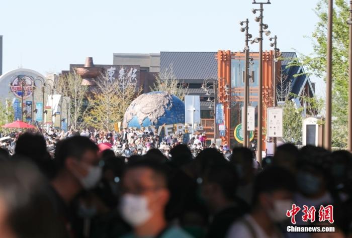 資料圖:北京環(huán)球度假區(qū)內,眾多游客從環(huán)球城市大道進入園區(qū)。 中新社記者 賈天勇 攝