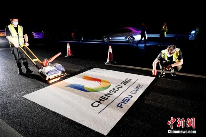 資料圖:圖為成都大運(yùn)會(huì)專用車道地標(biāo)設(shè)立現(xiàn)場(chǎng)。中新社記者 安源 攝
