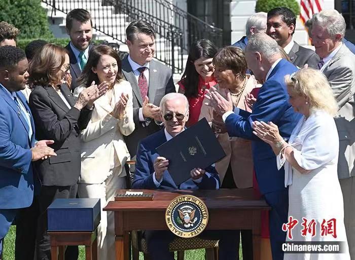 資料圖:當(dāng)?shù)貢r(shí)間8月9日,美國(guó)總統(tǒng)拜登在白宮簽署《芯片和科學(xué)法案》。 中新社記者 陳孟統(tǒng) 攝