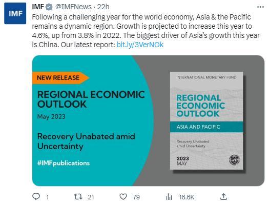 國際貨幣基金組織(IMF)5月2日發(fā)布《亞洲及太平洋地區(qū)經(jīng)濟(jì)展望報(bào)告》,圖片來源:國際貨幣基金組織社交媒體截圖
