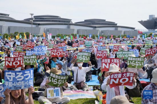 5月3日是日本憲法紀(jì)念日。當(dāng)天,約2.5萬名日本民眾聚集在東京有明防災(zāi)公園的廣場(chǎng)上,舉行了守護(hù)憲法集會(huì),他們打出守護(hù)憲法、反對(duì)強(qiáng)軍擴(kuò)武、不要反擊能力、反對(duì)修改憲法等內(nèi)容的標(biāo)語和旗幟,呼吁守護(hù)憲法、守護(hù)和平。