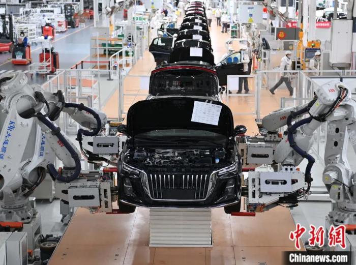 在吉林長(zhǎng)春的中國(guó)一汽紅旗制造中心繁榮廠區(qū),全自動(dòng)機(jī)械手臂在裝配輪胎。智能化、自動(dòng)化、無人化成為生產(chǎn)生活發(fā)展的趨勢(shì)。張瑤 攝