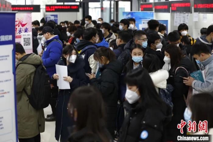 2023年2月8日,北京市教委所屬北京高校大學(xué)生就業(yè)創(chuàng)業(yè)指導(dǎo)中心迎來春季首場(chǎng)線下雙選會(huì),應(yīng)聘者排隊(duì)等候向用人單位提交個(gè)人簡(jiǎn)歷。富田 攝
