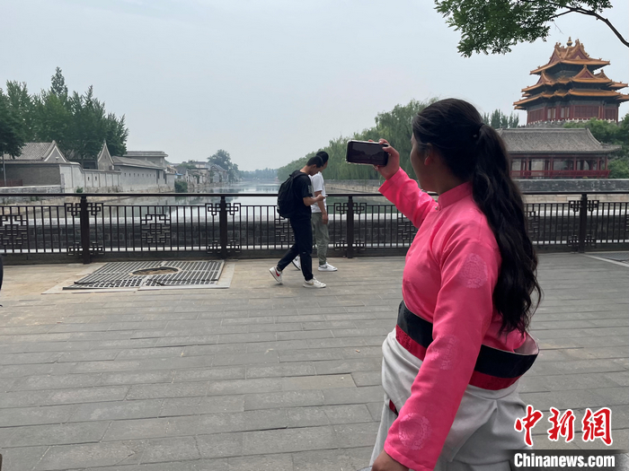 鬧增拉毛第一次通過手機鏡頭拍攝故宮外圍的場景。袁秀月 攝