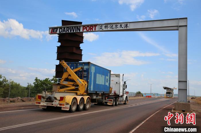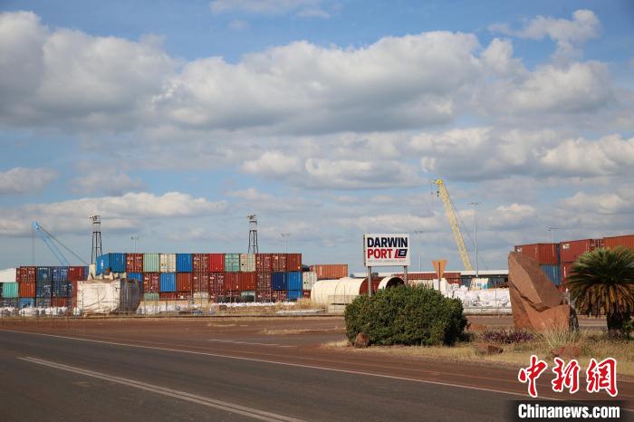 從澳大利亞北領(lǐng)地達(dá)爾文市往東驅(qū)車17公里便抵達(dá)號稱“通往亞洲的大門”的達(dá)爾文港。穿過用鋼鐵搭建的有中文標(biāo)注著“嵐橋達(dá)爾文港”的大門便是港口貨物作業(yè)區(qū)。