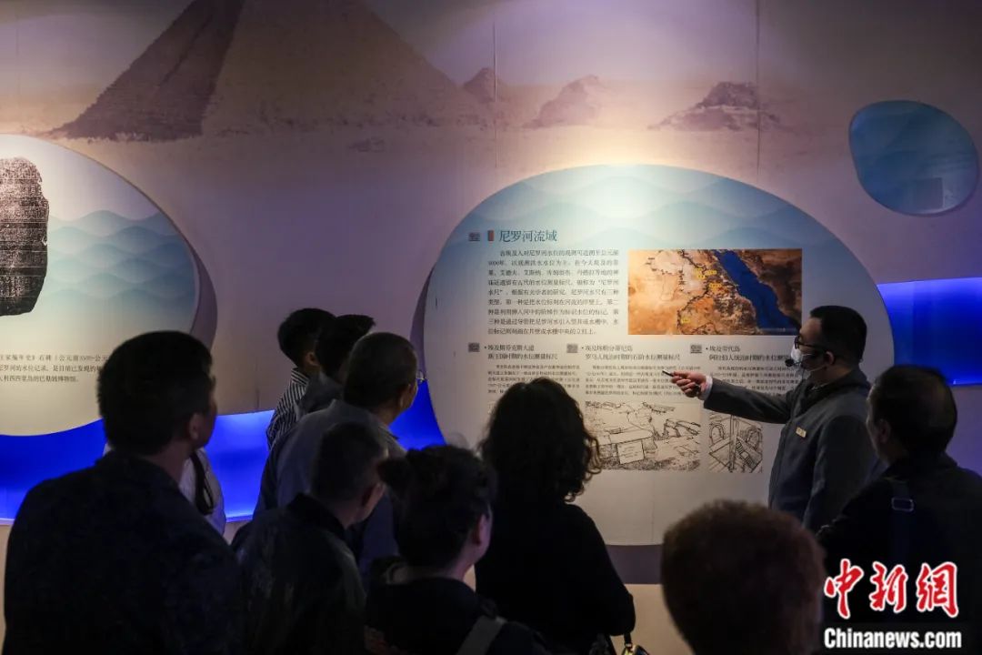 白鶴梁水下博物館講解員向游客介紹尼羅河流域水位測(cè)量標(biāo)尺——“尼羅尺”。何蓬磊 攝