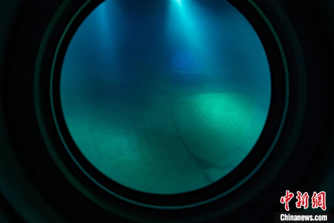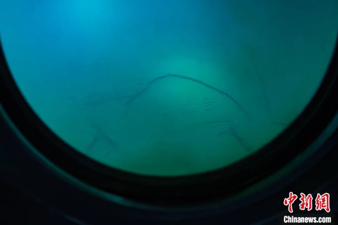 通過(guò)白鶴梁水下博物館觀測(cè)窗口拍攝的水下題刻。何蓬磊 攝