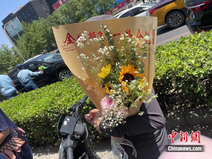 另一位送考家長梁女士為其弟弟買了一束98元的鮮花。她認為,這種方式能讓弟弟走出考場后更直接地感受到家人的關(guān)心和祝福。