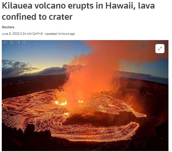 據(jù)路透社報道,美國地質(zhì)調(diào)查局 (USGS) 通報稱,當天凌晨4時44分,“基拉韋厄火山噴發(fā)?!?/p>