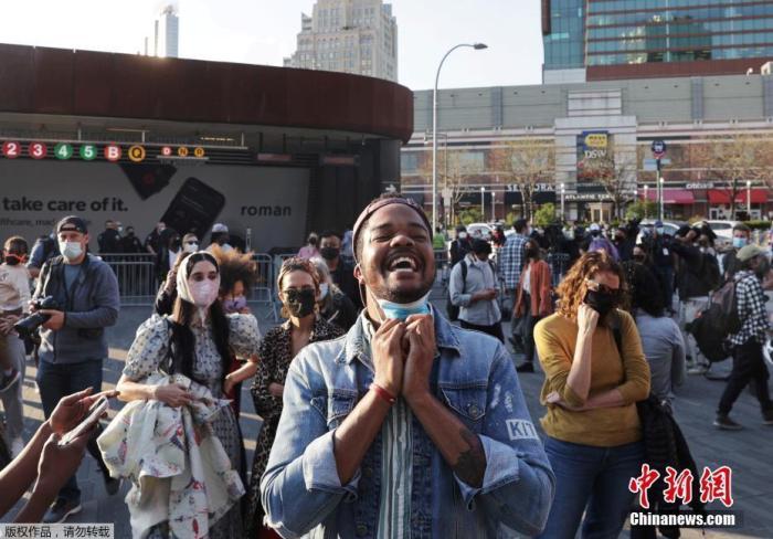 2021年6月25日,美國(guó)弗洛伊德案涉事前警察肖萬(Derek Chauvin)獲刑270個(gè)月,即22年零6個(gè)月。圖為美國(guó)民眾在街頭激動(dòng)高呼。