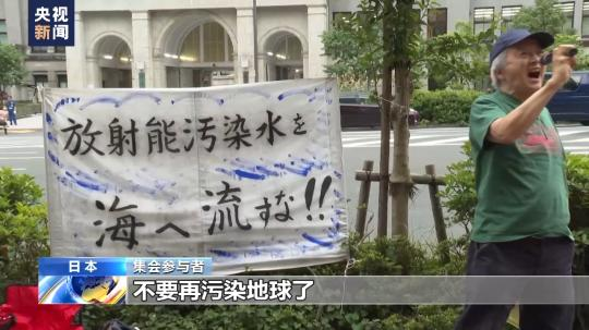 集會參與者:說是“處理水”實則是污染水,里面含有大量的放射性物質(zhì)。如果真的是安全的話,那請他們用那個水洗澡,去使用它,用它做飯,去喝它,這樣生活五年的話應(yīng)該就清楚了。像這樣,沒有任何人能說它實際上是安全的,沒有人能證明它是安全的。