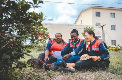 中國(guó)師父陳玲(右)是非洲之星鐵路運(yùn)營(yíng)公司工電部電子設(shè)備檢修工區(qū)工長(zhǎng)。在肯尼亞工作4年來(lái),她見證了女學(xué)員們電務(wù)技術(shù)的成長(zhǎng)?!艾F(xiàn)在她們都能獨(dú)當(dāng)一面?!标惲嵴f(shuō)。朱迪思(左)是陳玲的學(xué)員之一,她從師父那里獲得的不僅是技術(shù),工作間隙對(duì)飲食、文化等多維度的交流同樣讓她受益匪淺。“我們之間是師徒,更是姐妹?!敝斓纤颊f(shuō)。圖為陳玲在休息時(shí)教學(xué)員唱中文歌曲。