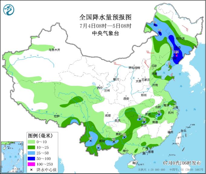 中新網7月4日電 據中央氣象臺網站消息,中央氣象臺今晨繼續(xù)發(fā)布暴雨藍色預警:預計今明兩天,東北地區(qū)及內蒙古東北部將成強降雨主陣地,其中今天白天至夜間,內蒙古東北部、黑龍江西南部、吉林、遼寧中東部等地部分地區(qū)有大到暴雨,遼寧東北部等局地有大暴雨(100~120毫米);上述部分地區(qū)伴有短時強降水(最大小時降雨量20~50毫米,局地可超過60毫米),局地有雷暴大風等強對流天氣。明天,內蒙古東北部、黑龍江大部、吉林北部有中到大雨,局地暴雨。受強降雨影響,內蒙古東北部、東北部分地區(qū)等地有暴雨災害中高風險,關注局地可能發(fā)生的山洪、地質災害和城鄉(xiāng)積澇,并防范強對流天氣的危害。