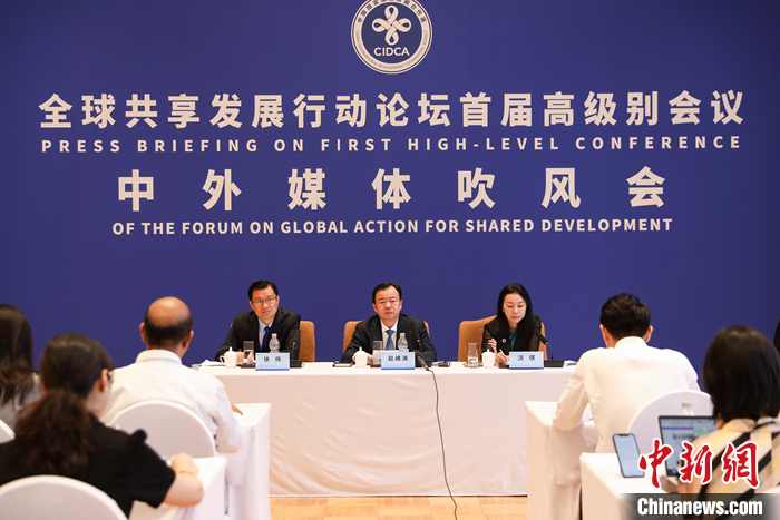 7月4日,全球共享發(fā)展行動(dòng)論壇首屆高級別會(huì)議中外媒體吹風(fēng)會(huì)在北京舉行。針對有觀點(diǎn)認(rèn)為西方國家與發(fā)展中國家看待全球發(fā)展倡議的視角不同,對全球發(fā)展倡議的評價(jià)也不同,中國國家國際發(fā)展合作署副署長趙峰濤(中)在北京回應(yīng)指出,全球發(fā)展倡議面向全球,無分南北。倡議是開放、包容的,不能用狹隘的地緣政治、冷戰(zhàn)思維、陣營對抗理念來解讀。 中新社記者 趙雋 攝