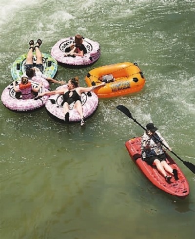 美國(guó)南部多地近日接連刷新高溫紀(jì)錄。圖為近日,在美國(guó)得克薩斯州新布朗費(fèi)爾斯,人們?cè)诤又邢睢?/p>