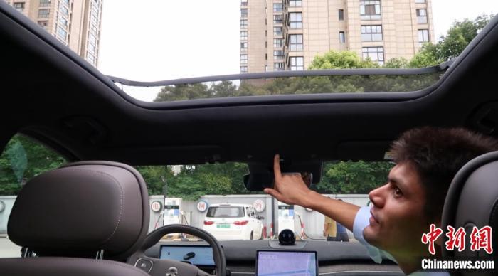 在華留學(xué)生上車(chē)體驗(yàn)新能源汽車(chē)站內(nèi)“一鍵換電”。 唐煒妮 攝
