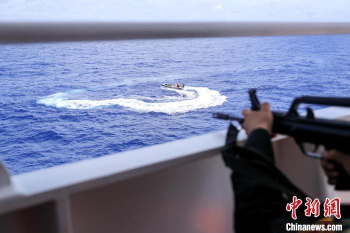 兩發(fā)紅色信號(hào)彈升空,一聲長(zhǎng)汽笛響徹海域。指揮所通過(guò)16國(guó)際頻道用英語(yǔ)向高速接近的“海盜艇”發(fā)出警告:“你迅速離開,否則后果自負(fù)?!彪S船取證人員全程照相、錄像取證。
