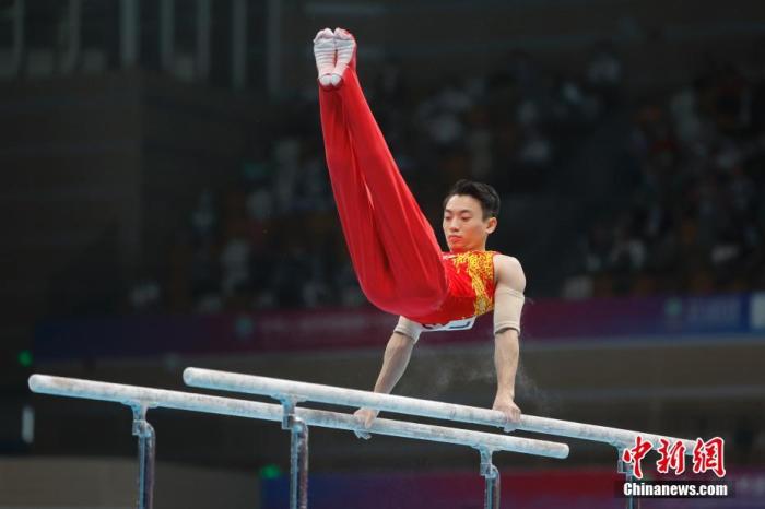 資料圖:第十四屆全運(yùn)會男子雙杠決賽中,四川隊(duì)選手鄒敬園奪冠。中新社記者 蔣啟明 攝