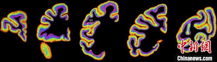 圖為不同類型細胞在獼猴大腦上的分布切片?!≈袊茖W院腦科學與智能技術卓越創(chuàng)新中心 供圖