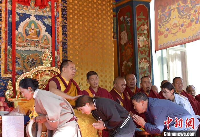 7月17日,班禪在雪林多吉頗章接受信眾朝拜。 中新社記者 李林 攝