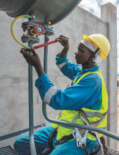 當(dāng)?shù)毓と嗽陧?xiàng)目現(xiàn)場(chǎng)工作。