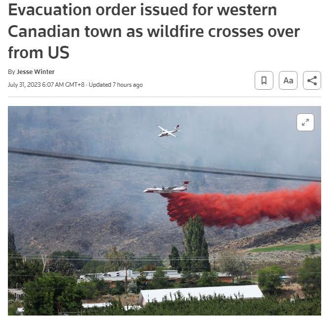 美國(guó)野火“跨境”蔓延 加拿大邊境小鎮(zhèn)發(fā)布疏散令