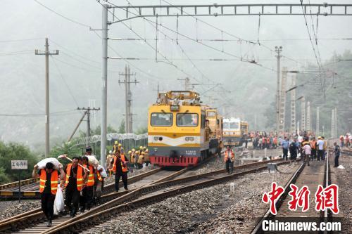 8月1日,北京門頭溝區(qū),豐沙鐵路妙峰山鎮(zhèn)水峪嘴村段,工作人員前往鐵路線清淤搶修。7月29日以來,北京地區(qū)持續(xù)強降雨,西南部降雨量大。受降雨影響,北京豐臺至沙城鐵路(豐沙線)嚴重水害?!≈行律缬浾?盛佳鵬 攝