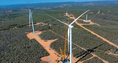 位于巴西巴伊亞州的風(fēng)電項目正在進(jìn)行機器吊裝。