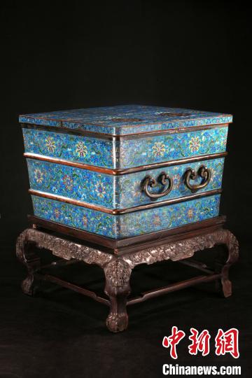 沈陽故宮院藏的清乾隆款掐絲琺瑯寶相花大冰箱,內(nèi)部為錫板里,內(nèi)加隔層木板,放入天然冰可使食品保鮮。 (沈陽故宮博物院供圖)