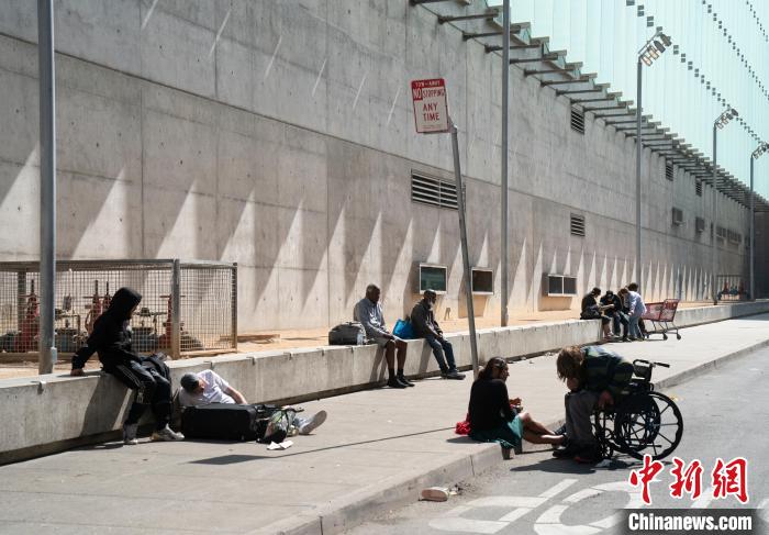 當?shù)貢r間8月19日,無家可歸者聚集在美國舊金山聯(lián)邦大廈附近。中新社記者 劉關(guān)關(guān) 攝