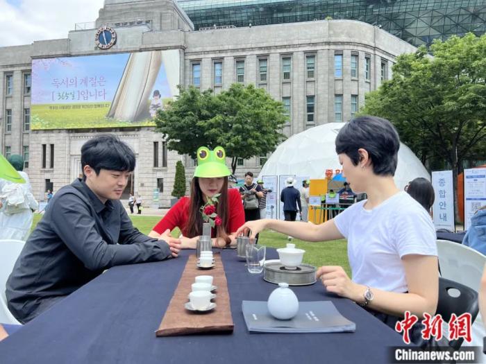 茶和天下活動(dòng)在首爾市市廳廣場舉行飲茶體驗(yàn)。劉旭 攝